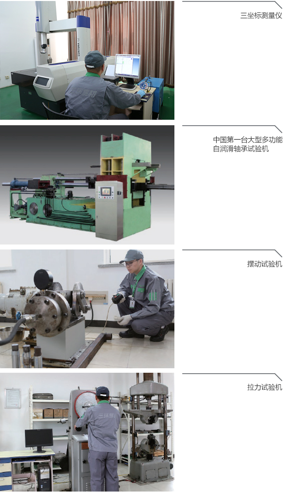 企業(yè)技術(shù)中心擁有1000千牛推力軸承試驗(yàn)臺(tái)、大型多功能自潤(rùn)滑軸承試驗(yàn)機(jī)、PV試驗(yàn)機(jī)、三坐標(biāo)測(cè)量?jī)x等摩擦磨損、材料力學(xué)、理化分析試驗(yàn)設(shè)備,擁有各種運(yùn)動(dòng)形式的模擬試驗(yàn)設(shè)備,中心各種測(cè)試設(shè)備為新產(chǎn)品的研究開(kāi)發(fā)提供強(qiáng)有力試驗(yàn)手段,為重點(diǎn)工程產(chǎn)品出廠前進(jìn)行模擬試驗(yàn)提供可靠性依據(jù)。